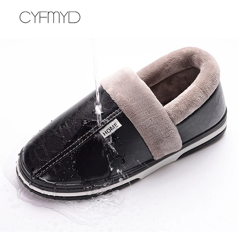 Best . (54% Off) Buy Winter Leather Slippers for men Plus size 48 Sturdy Sole Fur slippers Home 2019 Wear resistant Warm Boys Slipper Indoor Price Online.